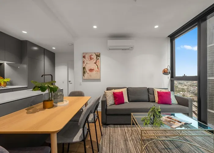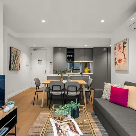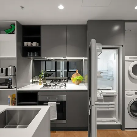 A fully furnished kitchen has a microwave, an electric kettle, and a refrigerator at guests' disposal. You can head to I Love Dumplings, which offers Asian cuisine a 5-minute walk from the property. The 100 m^2 apartment is a few minutes' drive from Flinders Street train station. After a day full of activities, relaxing by a swimming pool is a perfect option.